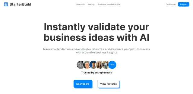 StarterBuild is an AI-powered platform designed to help entrepreneurs and businesses refine their business ideas and accelerate their growth. It offers comprehensive, customizable reports that provide critical strategic insights. These reports cover essential areas such as risk assessment with proposed solutions, monetization strategies, unique value propositions, detailed user persona development, branding recommendations, thorough market size analysis, prioritized feature roadmaps, and suggestions for integrating AI.
